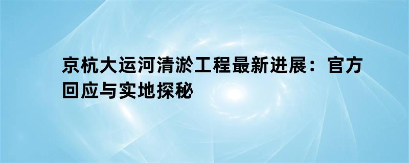 京杭大运河清淤工程最新进展:官方回应与实地探秘