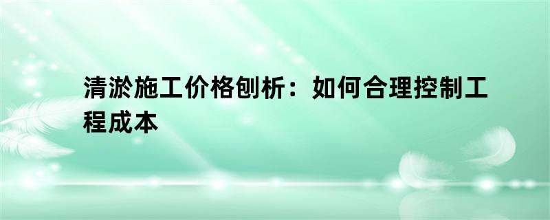 清淤施工价格刨析:如何合理控制工程成本
