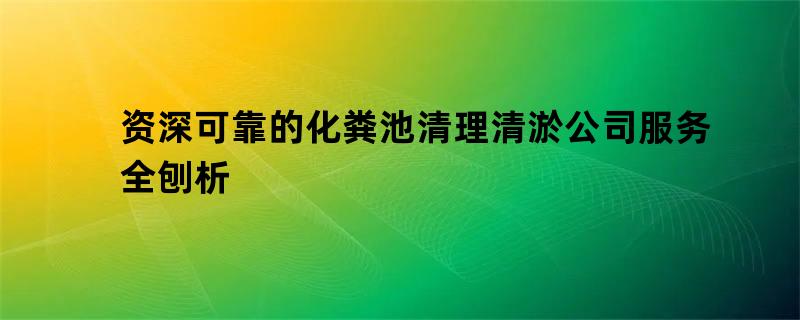 资深可靠的化粪池清理清淤公司服务全刨析