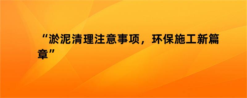“淤泥清理注意事项,环保施工新篇章”