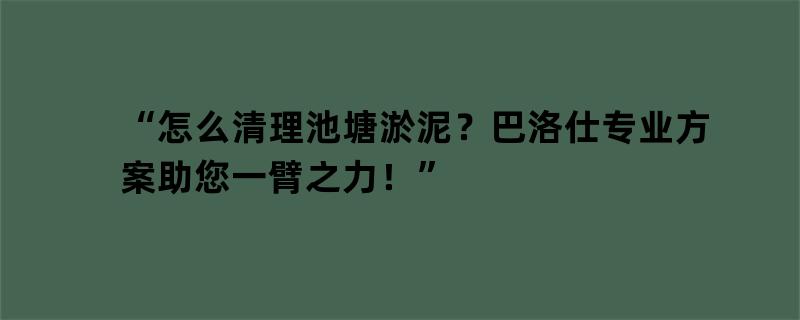 “怎么清理池塘淤泥?巴洛仕专业方案助您一臂之力!”