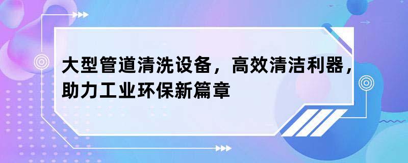 大型管道清洗设备,高效清洁利器,助力工业环保新篇章伴随工业生产规模的不断扩大,大型管道清洗设备在化工、石油、食品、制药等行业中的实施越来越广泛。这些设备能够效率高、安全地完成管道内部的清洗差事,确保生产经过的顺利进行。我们将围绕大型管道清洗设备展开讨论,从其差事原理、种类、实施领域等方面进行详细简介。