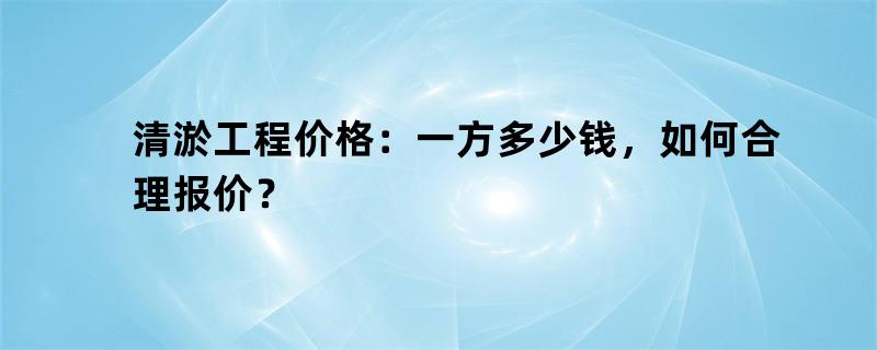 清淤工程价格:一方多少钱,如何合理报价?