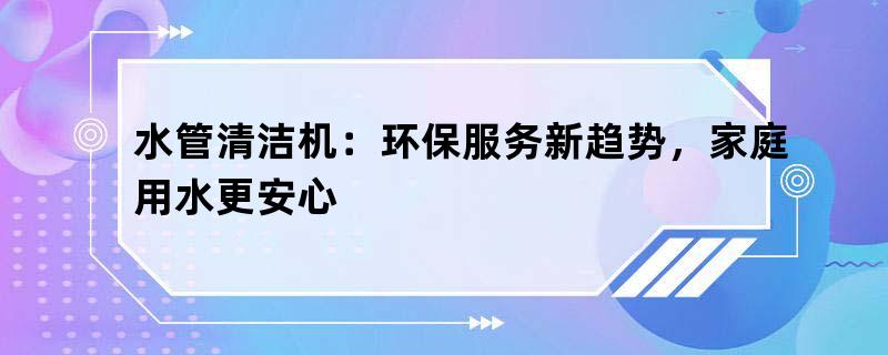 水管清洁机:环保服务新趋势,家庭用水更安心