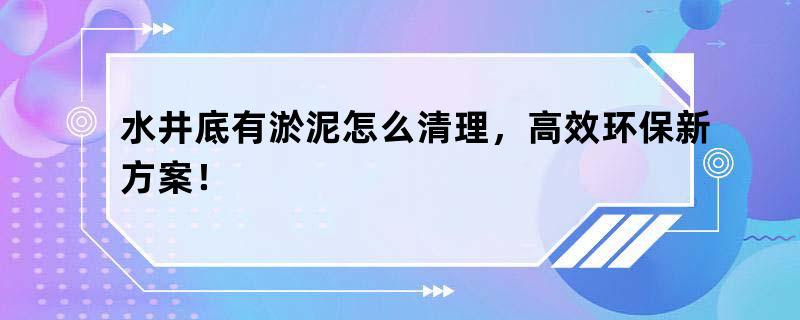 水井底有淤泥怎么清理,高效环保新方案!水井底淤泥的清理是保障水井正常使用和水质安全的主要环节。淤泥的形成通常是由于水井长时间使用,底部沉积物积累所致。以下是一些常用的水井底淤泥清理方法: