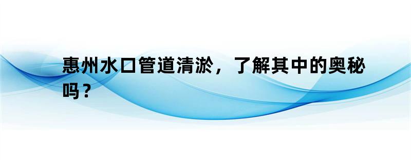 惠州水口管道清淤,了解其中的奥秘吗?