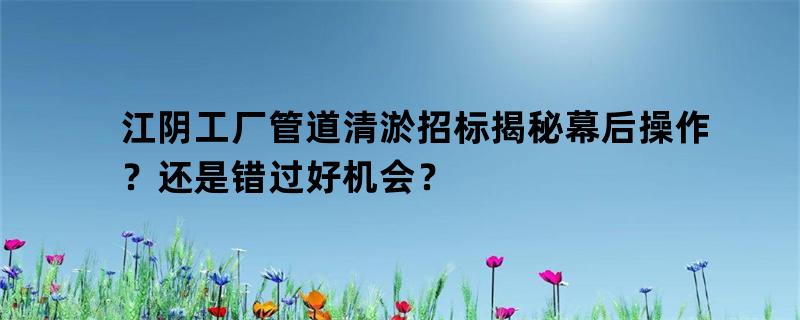 江阴工厂管道清淤招标揭秘幕后操作?还是错过好机会?