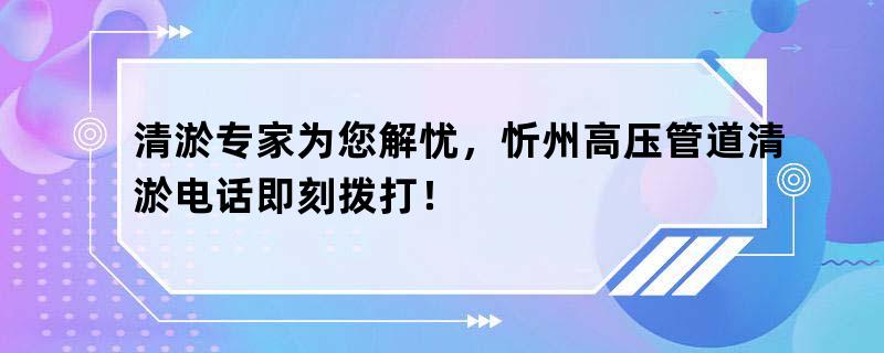 摘要:清淤专家为您解忧,忻州高压管道清淤电话即刻拨打!