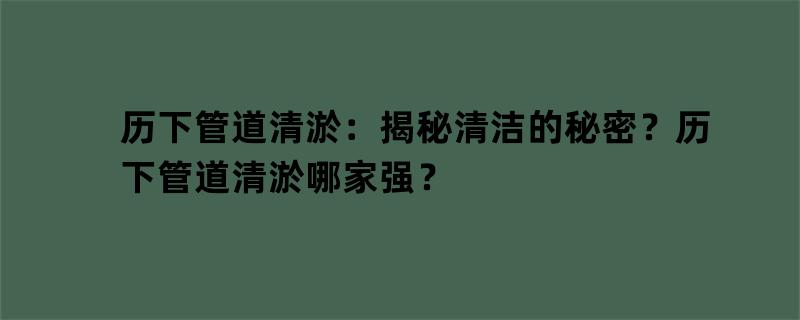 历下管道清淤:揭秘清洁的秘密?历下管道清淤哪家强?