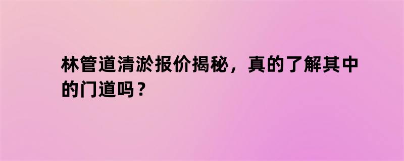 林管道清淤报价揭秘,真的了解其中的门道吗?