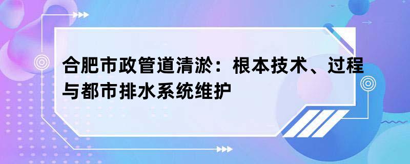 合肥市政管道清淤:根本技术、经过与都市排水系统维护