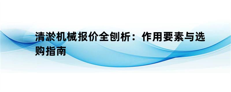 清淤机械报价全刨析:作用要素与选购指南