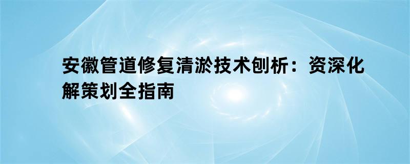 安徽管道修复清淤技术刨析:资深化解策划全指南