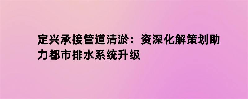 定兴承接管道清淤:资深化解策划助力都市排水系统升级