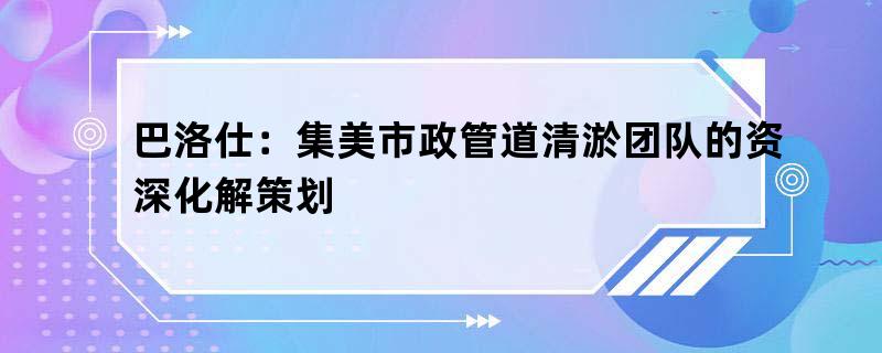 巴洛仕:集美市政管道清淤团队的资深化解策划