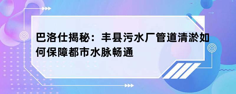 巴洛仕揭秘:丰县污水厂管道清淤如何保障都市水脉畅通
