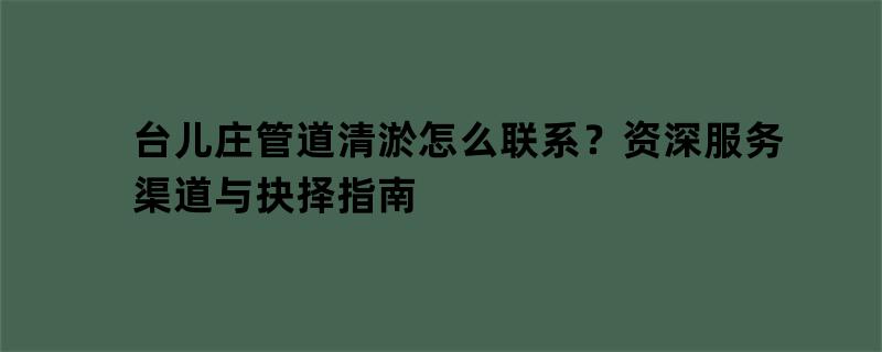 台儿庄管道清淤怎么联系?资深服务渠道与抉择指南