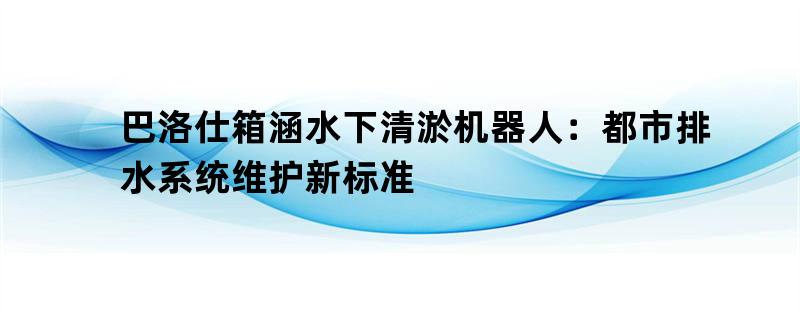 巴洛仕箱涵水下清淤机器人:都市排水系统维护新标准