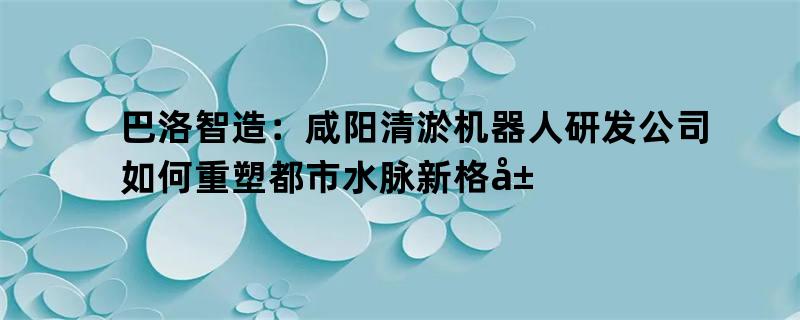 巴洛智造:咸阳清淤机器人研发公司如何重塑都市水脉新格局