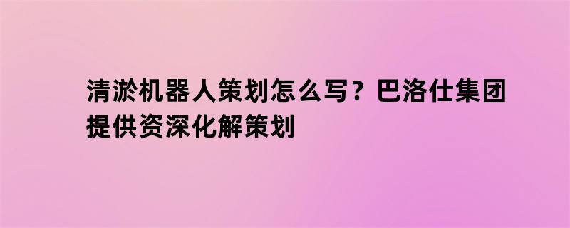 清淤机器人策划怎么写?巴洛仕集团提供资深化解策划