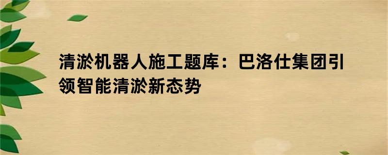 巴洛仕集团:清淤机器人施工题库的领先者