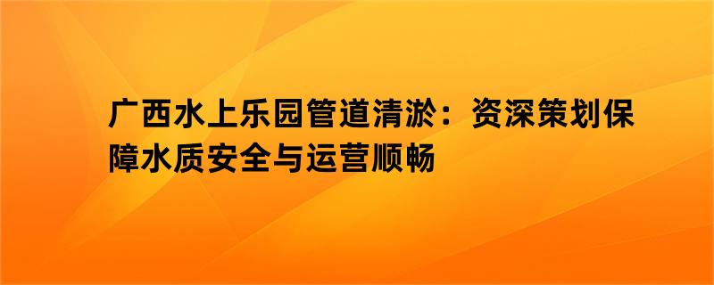 广西水上乐园管道清淤:资深策划保障水质安全与运营顺畅