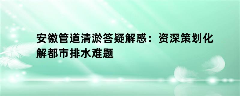 安徽管道清淤答疑解惑:资深策划化解都市排水难题