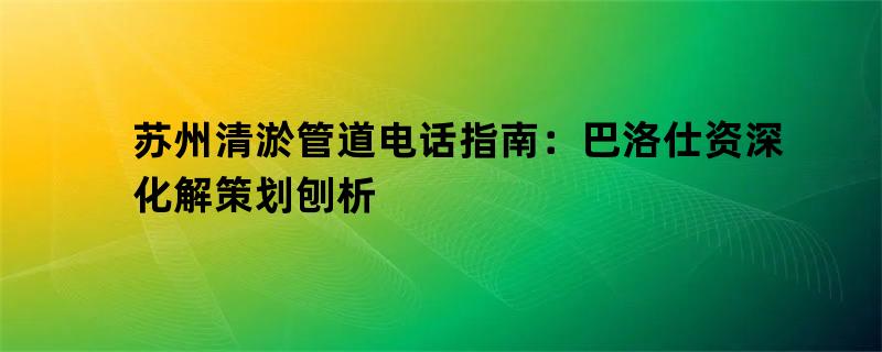 苏州清淤管道电话指南:巴洛仕资深化解策划刨析