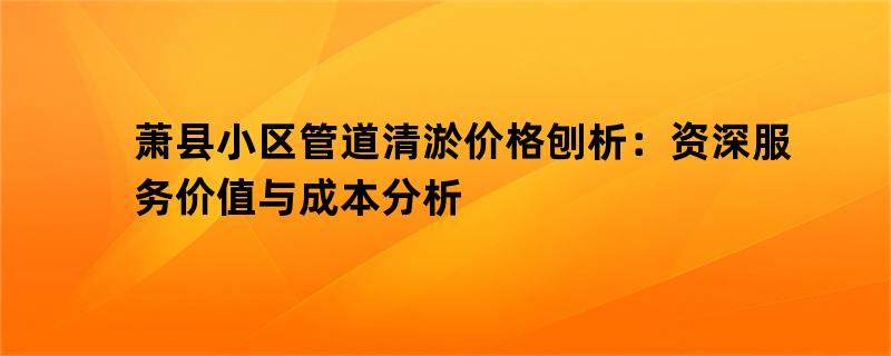 萧县小区管道清淤价格刨析:资深服务价值与成本分析