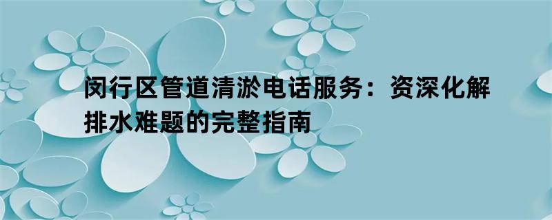 闵行区管道清淤电话服务:资深化解排水难题的完整指南