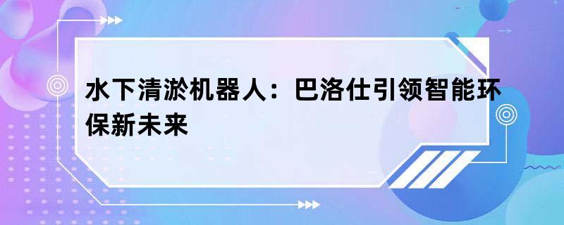 水下清淤机器人:巴洛仕引领智能环保新未来