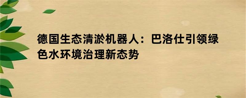 # 德国生态清淤机器人:巴洛仕引领绿色水环境治理新态势