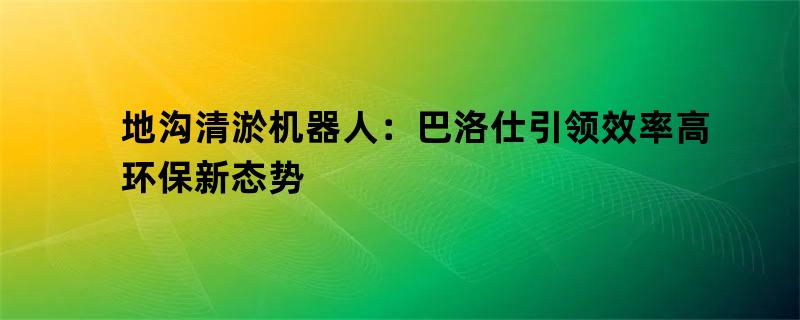 地沟清淤机器人:巴洛仕引领效率高环保新态势