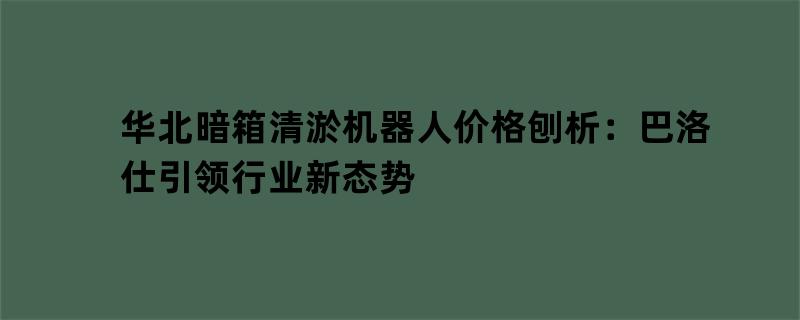 华北暗箱清淤机器人价格刨析:巴洛仕引领行业新态势