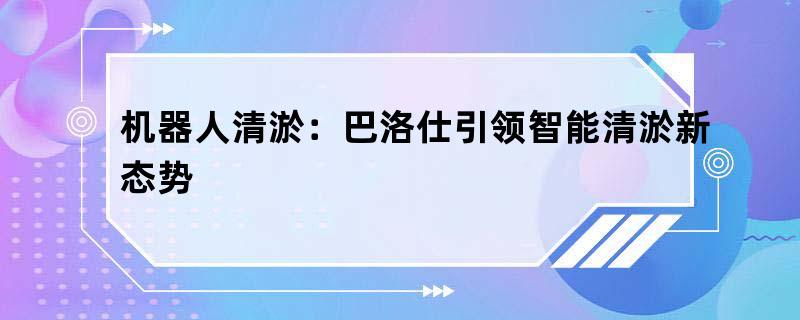 机器人清淤:巴洛仕引领智能清淤新态势