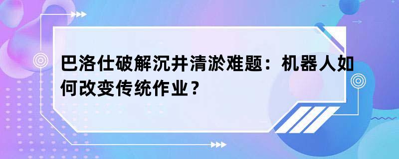巴洛仕破解沉井清淤难题:机器人如何改变传统作业?