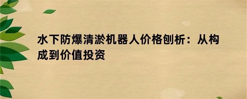 水下防爆清淤机器人价格刨析:从构成到价值投资
