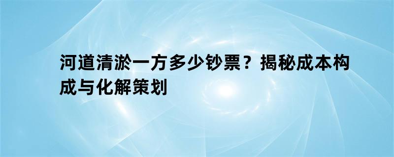 河道清淤一方多少钞票?揭秘成本构成与化解策划