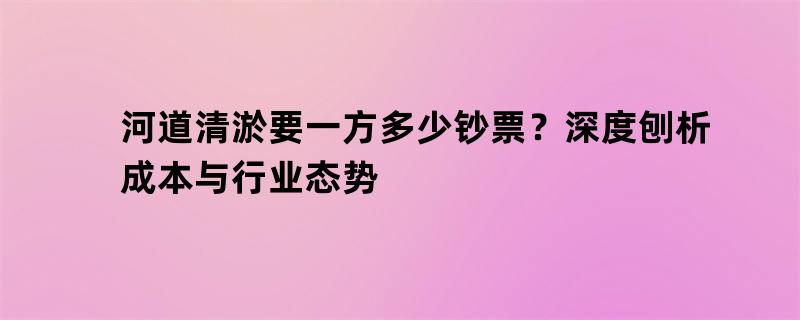 河道清淤要一方多少钞票?深度刨析成本与行业态势