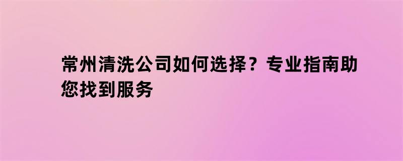 常州清洗公司如何选择?专业指南助您找到服务