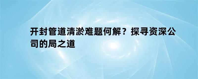 开封管道清淤难题何解?探寻资深公司的局之道