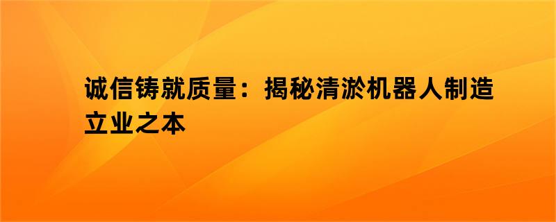 诚信铸就质量:揭秘清淤机器人制造立业之本
