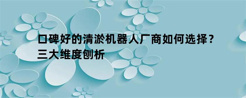 口碑好的清淤机器人厂商如何选择?三大维度刨析