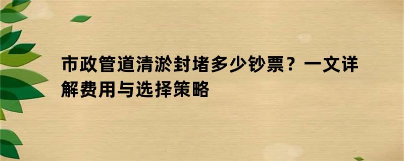 市政管道清淤封堵多少钞票?一文详解费用与选择策略