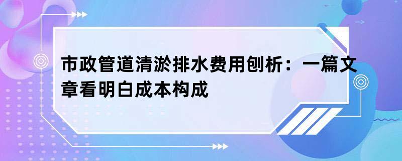 当都市的地下管网面临堵塞,一场及时的“肠道”便显得至关重要。市政管道清淤排水,这项看似专业远离日常的工程,实则与都市的顺畅呼吸、居民的安居乐息息相关。不管是应对雨季内涝,依然保障日常污水排放,、专业的清淤服务基本上都市运维的基石。但是,当或您的单位面临这项需求时,脑海中首先出现的咨询题往往是:市政管道清淤排水到底需要多少钞票? 那个咨询题的答案一个简单的数字,而是一个由多种因素交错构成的动态公式。为您层层剖析,揭开市政管道清淤排水费用的奥秘面纱mgc#_##_#mgcmgc#_##_#mgc 妨碍费用的核心因素:为何价格千差万不?