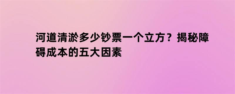河道清淤多少钞票一个立方?揭秘障碍成本的五大因素