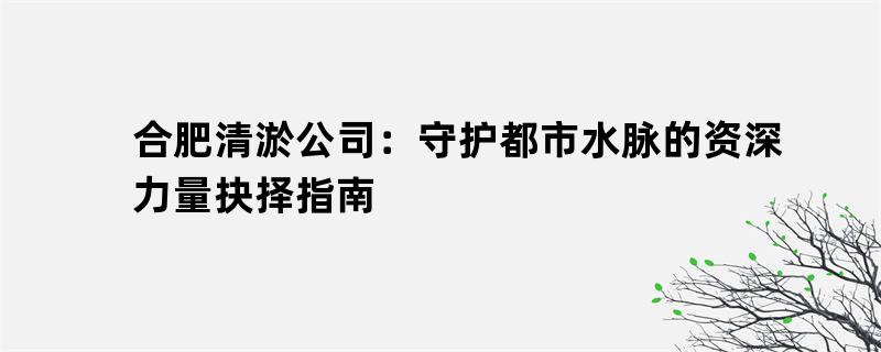 合肥清淤公司:守护都市水脉的资深力量抉择指南