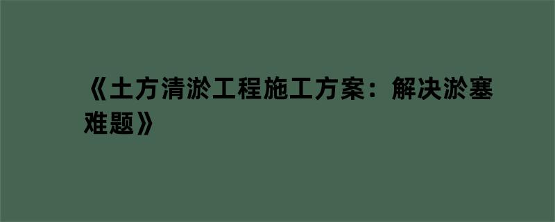 淤塞问题是城市建设中的一个严重难题,对交通、工农业生产、环境等产生了负面影响。土方清淤工程施工方案的出现,为解决淤塞问题提供了一种新的方案。