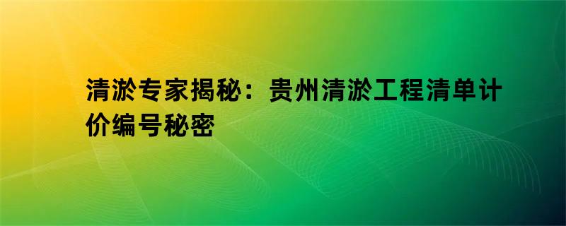 清淤专家揭秘:贵州清淤工程清单计价编号秘密