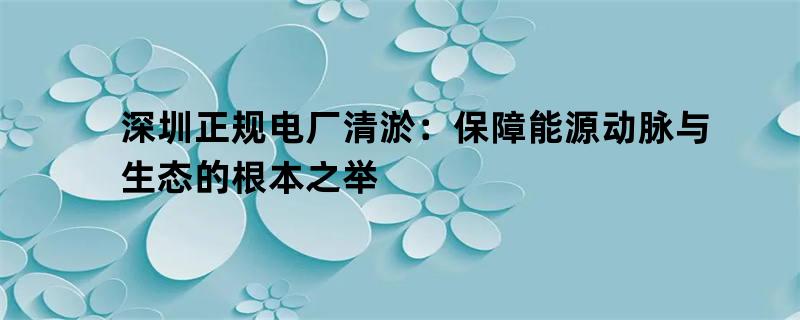抉择正规清:为深圳的可持续进步注入绿色动力